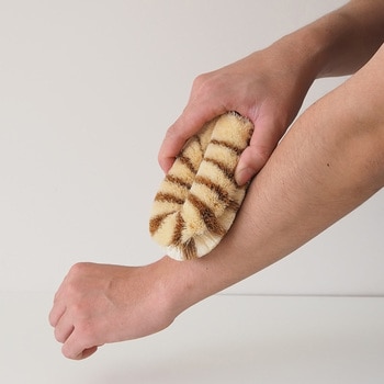 新しくなったタムラさんシリーズは、個性的なシマシマ模様はそのまま、サイザル麻とソフトパームの絶妙な組み合わせでミディアムタイプに仕上げました。心地よい刺激が特徴的で、洗い心地もさっぱりします。パーム(ココナッツ繊維)は使い込むほどに身体に馴染んでいく特徴があるため、使い始めは少し硬く感じるかもしれませんが、徐々に自分好みのかたさを感じられるようになります。
