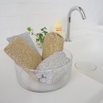 ポリエステルフィルムに高純度アルミ微粒子を真空蒸着した食器洗い用スポンジ。傷がつきにくく、コーティング加工・プラスチック・琺瑯・せともの・ガラスなど幅広くお使いいただけます。アルミ微粒子が汚れをすばやく落とすので少量の洗剤でもご利用いただけます。