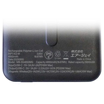 付属品USB C-Cケーブル、取扱説明書、保証書材質PC、ABS、アルミニウム合金使用温度範囲(℃)蓄電可能温度:0~45、充電可能温度:’-10~+55電圧(V)標準:3.85、最大:4.4出力[合計] 5V/3A(15W Max) (複数ポート使用時)、[USB-C] 5V/3A、9V/2.22A、12V/1.67A(PD20W Max) (単ポート使用時)、[マグネット式充電] 5V/1A(5W)、7.5V/1A(7.5W)、9V/1.12A(10W)、9V/1.66A(15W Max) (単ポート使用時)入力[USB-C] 5V/3A、9V/2A(PD18W Max)保護機能短絡保護、過電流保護、過充電保護、低電圧保護、軽負荷シャットダウン、温度保護充放電回数(回)約2000(理論値)内容量1台