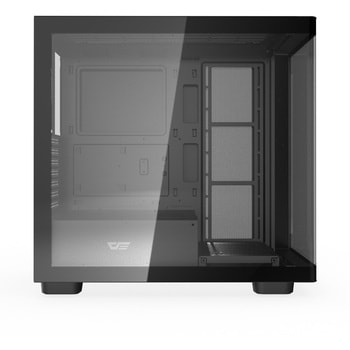 湾曲一体ガラスを採用した継ぎ目のないピラーレスのミドルタワーケースです。 PCの約半分が開かれているので、発光パーツだけでなく全てのパーツやレイアウトを楽しみめます。 最大10基のファンが搭載可能で、納得のエアフローを実現します。 高温化が著しいグラフィックボードに底面から直接外気を送り、熱移動に準じた上方や背面からの排気によって効率的な冷却を実現します。 水冷システムを搭載したい場合も最大360mmのラジエーターをサポートします。 トップにメッシュパネルを採用し、上方への排気をスムーズに行うことができます。 底面にダストフィルターを搭載し、防塵にも十分に対応します。 最大2台の3.5インチHDDが搭載可能なストージスペースを確保しております。 充実したI/Oポートがプレイ環境を充実・快適に演出します。 マザーボード裏の配線スペースへのアクセスを考慮した各所の開口部、ケーブル集約に便利なスリッドを配しました。 底面の電源搭載部や3.5インチベイ、マザーボード裏の2.5インチベイへのアクセスも容易です。 拡張性とメンテナンス性に配慮した設計です。 ガラスパネルは全面底部のネジ1つと、要所に配した樹脂製の凹凸パネル出の固定なので、着脱が容易です。