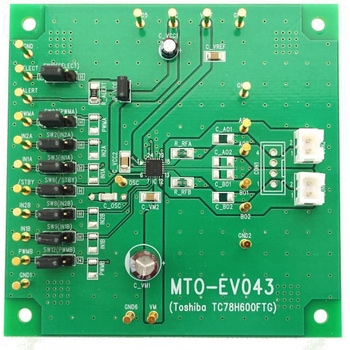 TC78H600FTGは、東芝デバイス&ストレージ社製の出力トランジスタにDMOS構造を採用したデュアルブリッジドライバICです。2つのブラシ付きDCモータをダイレクトPWM制御、および定電流PWM制御により駆動することができます。また、ステッピングモータ接続用コネクタを実装することで、1つのバイポーラ型ステッピングモータを制御/駆動することができます。出力耐圧18V、最大定格電流1.0Aを実現しています。