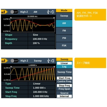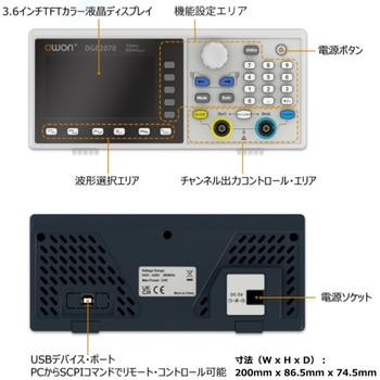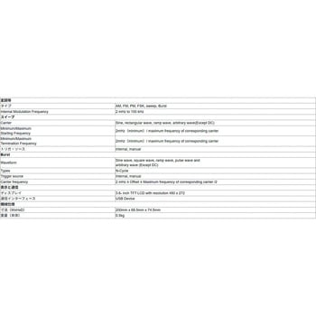 【コンパクト設計と直感的UI】本体サイズ200×68.5×74.5mm・重量わずか0.5kgの軽量ボディに、3.6インチTFTカラー液晶(480×272)を搭載。波形プレビューや変調設定をわかりやすく表示し、実験台や現場での扱いやすさを追求。USB給電式で携帯性にも優れ、教育機関から研究開発・サービスエンジニアの現場まで幅広く活躍します。
