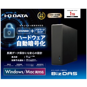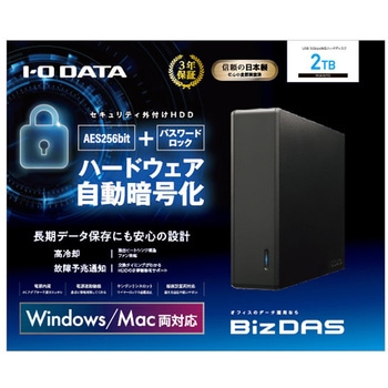 USB 5Gbps(USB 3.2 Gen1)に対応した3.5インチ外付けセキュリティーハードディスクです。ハードウェアによる自動暗号化機能を搭載し、パスワード認証で大切なデータをしっかり守ります。また、電源内蔵でACアダプターがないのでコンセント周りがすっきりまとまります。