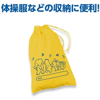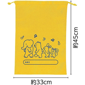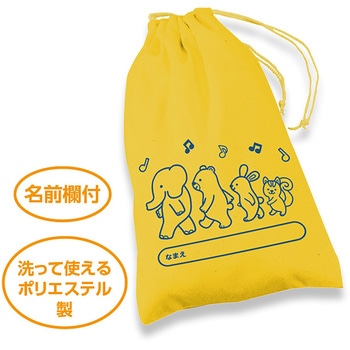 通学時に目立つ防犯カラー!洗濯OKで衛生的に使えるかわいい収納袋!体操服やノート類をまとめて入れられる大きめサイズの収納袋です。防犯色のイエローにかわいい動物プリント付きで通学にも安心です。洗濯可能なポリエステル製で毎日清潔に使えます。お名前欄付きで、学校や習い事に大活躍します。