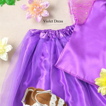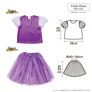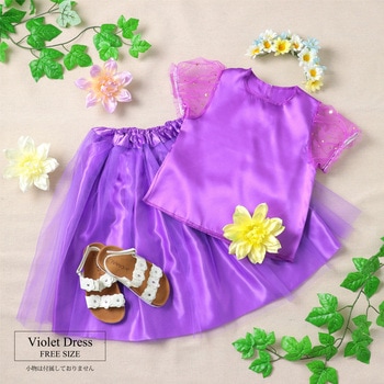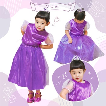 誕生日や発表会にぴったり!あこがれのプリンセスになりきれる衣装セット!キラキラ感たっぷりの紫のパフスリーブとチュールスカートがかわいい、プリンセスドレスセットです。大好きなプリンセスになりきって過ごす思い出づくりのお手伝いをします。誕生日会や発表会、パーティー、ハロウィンなどちょっとしたイベントにおすすめです。