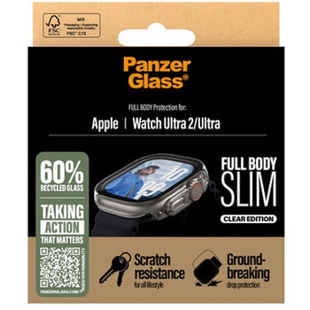 透明フレームを備えたフルボディケースは、時計の前面と側面全体を包み込むスリムで洗練されたデザインで、かさばることなく全面的に保護します。ボタンやコントロールへの容易なアクセスも維持しています。私たちは時計を守るだけでなく、地球環境も守ります。2024年には、PanzerGlass(R)コア製品のパッケージデザインにおける紙の使用量(平均66%*)を削減し、リサイクル可能なFSC(TM)認証の箱でお届けします。*2022年から2024年までの削減量は、PanzerGlass(R)コア製品群から選定された製品を比較して測定されています。