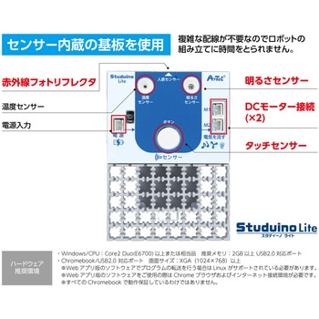 センサーを搭載したロボットカーを組み立て、プログラミングで自由に制御できます。Scratchベースの環境で直感的に操作でき、初心者から本格的な学習まで対応可能です。授業でも個人学習でも活用できます。衝突回避カーなど応用的な課題にも挑戦でき、探究的な学びをサポートします。Windows・Mac・ChromeOS対応で幅広い学習環境に対応しています。学習指導要領の「計測・制御」にも対応し、課題発見・解決力や論理的思考力を育成します。カリキュラムに沿ったワークシート付きで授業がスムーズに進行できます。ソフトウェアは無料でダウンロードできます。【動作環境】オンライン版(OS:Windows / ChromeOS / MacOS ブラウザ:Chrome Ver89以降 解像度:XGA以上)オフライン版(OS:Windows11/10/8.1/7・ChromeOS CPU:Core2 Duo以上 メモリ:2GB以上 USB2.0ポート)