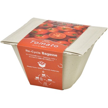 サトウキビの絞りカス「バガス」からできたエコ容器で野菜を育てる栽培セット「バガスグリーン」のミニトマトです。ミニトマトは普通のトマトに比べ病気にも強く、直径2~3センチの実が房になって付きます。上手に育てれば夏のあいだ毎日のように収穫できます。ガーデニング初心者にも簡単に育てられ家庭菜園に最適です。種蒔き時期:3~6月。発芽適温:25~30℃。栽培適温:20~30℃。発芽日数:4~6日。収穫/開花目安:3~4ヶ月(青~赤まで約1ヶ月)。【バガスグリーンとは】サトウキビの絞りカス「バガス」からできたエコ容器で野菜を育てる栽培セットです。紙の原料を木材からバガスに置き換えることで、森林の保護に繋がります。 栽培後も土に還ることができる、自然と調和した栽培セットです。