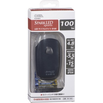 白色LEDを3灯搭載した明るいサイクルライトです。点灯・点滅の2モードに対応しており、夜間走行時の視認性を高めます。本体は取り外して懐中電灯としても使用可能です。付属のホルダーは直径25~32mmのパイプに取り付け可能です。保護等級IPX4(防まつ形)に対応しており、雨の日でも安心して使用できます。電源は単4形乾電池3本を使用し、動作確認用の電池も付属しています。