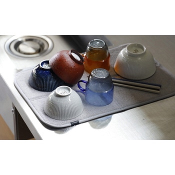 毎日の食器洗いを快適にサポートする「atomico(アトミコ) 畳んでしまえる吸水マット」マイクロファイバー製で濡れた食器類の水分をしっかりキャッチ。食器などをそのまま置くだけでなく、水切りラックの下に敷いて使ったりとアイデア次第で使い方が広がります
