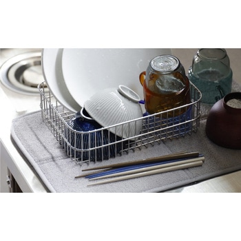 縫い目に沿って折り畳めば「2~3人分の食器」「1人分」「細長い調理器具」「ちょっとした洗い物」など、シーンに合わせて自由に使い分けができます。スペースに合わせて調整できるから、小さなキッチンから広いシンク周りまで幅広く対応します
