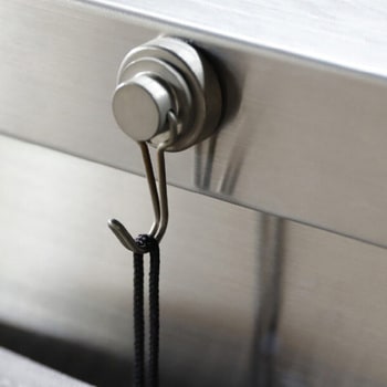 吊り下げ紐付きだから、使用後はサッと引っ掛けて乾燥させられます。薄くたたんで収納できるので、キッチンの引き出しや隙間にもすっきり収まります。「出したい時だけサッ」と取り出して使える便利さで、毎日の片付けがもっと気楽になります