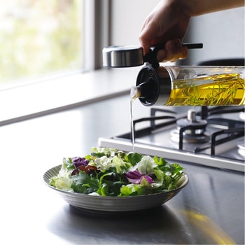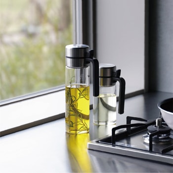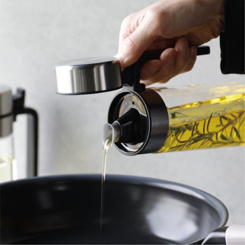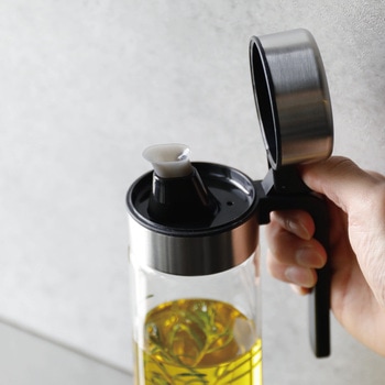 ワンタッチで開閉できるから、片手でサッと使える「atomico(アトミコ) 耐熱ガラス密閉オイルボトル」注ぎ口がシリコーン製で液だれしにくくスムーズに注げ、鍋やフライパンを持ちながらでも、必要な量だけサッと注げます