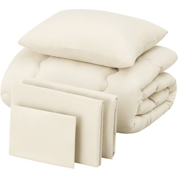 枕、枕カバー、掛け布団、掛け布団カバー、ボックスシーツの5点セットです。