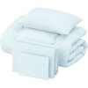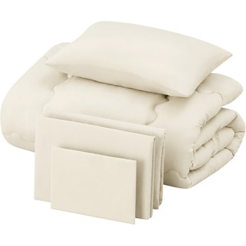 枕、枕カバー、掛け布団、掛け布団カバー、ボックスシーツの5点セットです。
