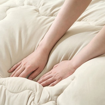 掛け布団はキルティング加工を施し、中綿の偏りを防いであたたかさや形状を保ちます。