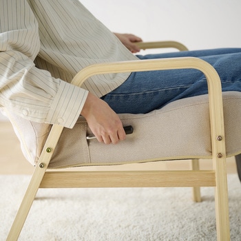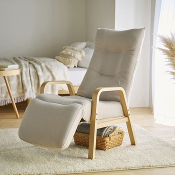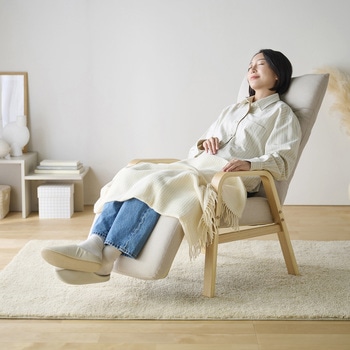 お好みの姿勢でゆったりとくつろげるリクライニングウッドアームチェアです。座面は厚さ約14cmでふんわりした座り心地です。立ち上がりやすく、手触りのよい木製アームです。頭部・腰部・脚部はそれぞれ独立してリクライニングできます。背もたれはレバー式で、座ったまま角度調節可能です。背もたれはゆったりもたれられるハイバック仕様です。脚部はフラットに近い状態でくつろげます。インテリアに馴染むデザインです。コンパクトに折りたためて便利です。お客様組み立てとなります。脚を取り付けるだけの簡単組み立てです。