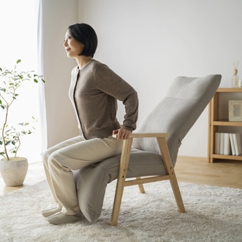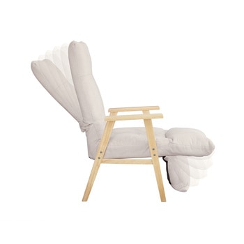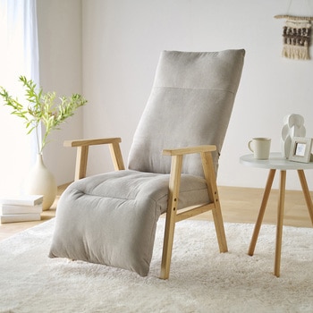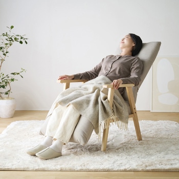 お好みの姿勢でゆったりとくつろげるリクライニングウッドアームチェアです。座面は厚さ約14cmでふんわりした座り心地です。立ち上がりやすく、手触りのよい木製アームです。腰部・脚部はそれぞれ独立してリクライニングできます。背もたれはゆったりもたれられるハイバック仕様です。脚部はフラットに近い状態でくつろげます。インテリアに馴染むデザインです。コンパクトに折りたためて便利です。お客様組み立てとなります。脚を取り付けるだけの簡単組み立てです。