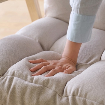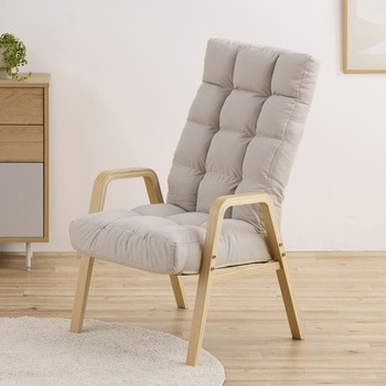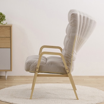 手触りのよい木製アームで座りやすく、立ち上がりやすいチェアです。背もたれは6段階リクライニング調節が可能です。座面は厚さ約14cmでふんわりした座り心地です。読書や映画鑑賞など長時間座っても快適です。インテリアに馴染むデザインです。コンパクトに折りたためて便利です。お客様組み立てとなります。脚を取り付けるだけの簡単組み立てです。