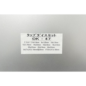 タップ/ダイス(50径):M6×1.0・M8×1.25・M10×1.5・M12×1.75・M114×2.0・M16×2.0・M18×2.5・M20×2.5・M]22×2.5・M24×3.0タップハンドルM3-12、タップハンドルM3-12、タップハンドルM8-25、ダイスハンドルM8-25、ダイスハンドル(50径)