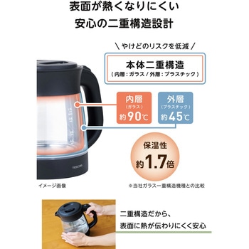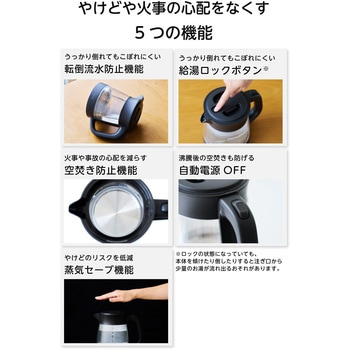 上質なガラスの透明感と安全な使い心地をあわせ持った、暮らしに寄り添う電気ガラスケトルです。においや味移りが少なく、飲み物本来のおいしさを楽しめる1.0Lサイズ。6つの安全機能付きで、くつろぎのティータイムをより安心に、快適に過ごせます。