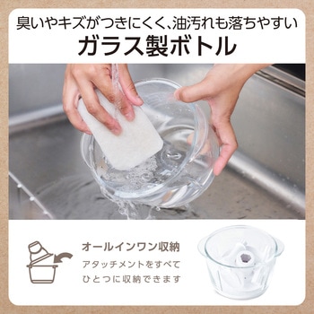 臭いやキズがつきにくく、油汚れも落ちやすいガラス製のボトルです。