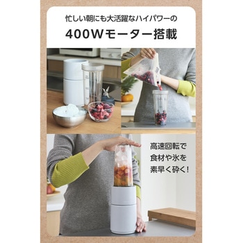 冷凍庫から”そのまま”スムージー。冷凍野菜や冷凍フルーツ、硬いナッツやスーパーフードも粉砕できる、パワフル6枚刃×ハイパワー400Wモーターのコンパクトミキサーです。