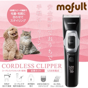 気になったらすぐ、おうちで手軽にトリミング。安全設計で使いやすい、ペット用コードレスバリカンです。ペット専用に開発された切れ味の良いセラミック刃で、伸びた毛をスムーズにカット。誤作動や電池の劣化を防ぐ安全機能を搭載し、ご自宅でのワンちゃん・ネコちゃんの健康維持をサポートします。