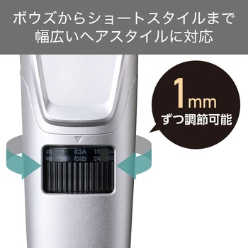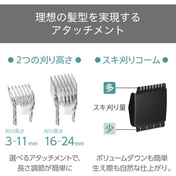刈り高さ幅3mm~11mm、16mm~24mmの選べるアタッチメントで、長さ調節が簡単に。手元のダイヤルを回して、刈り高さを1mmずつ調節できるから、セルフカット初心者の方でも安心です。