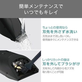 刃先を本体にセットしたまま水洗いでき、本体についた毛クズもきれいに流せます。