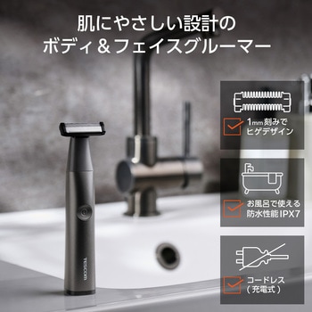 仕様●パーツ:ダブルT字刃(TA034106)、ネット刃(TA034113)、コームセット(TA034120)、ポーチ(TA034144)、電源ケーブル(TA034137)、掃除用ブラシ(501455)●水洗い:○●海外使用:○付属品ネット刃用キャップ、トリムコーム(1mm/2mm/3mm/4mm/5mm各1個)、電源ケーブル、ポーチ、掃除用ブラシ材質本体:ABS、刃:SUS色ブラック質量(g)93(本体のみ、ダブルT字装着時)、94(本体のみ、ネット刃装着時)電源(V)入力 AC100-240 50/60Hz 、出力消費電力(W)7以下(充電時)スイッチロック付スイッチ ON/OFF電源充電・交流式コード長さ(m)1外形寸法(幅W×奥行D×高さH)(mm)約40×約30×約158(本体のみ、ダブルT字刃装着時)、約38×約29×約155(本体のみ、ネット刃装着時)使用時間(分)45刈込み高さ(mm)1/2/3/4/5使用電池リチウムイオン電池(600mAh)保証期間1年間充電時間(分)90電池残量表示○防水性IPX7アタッチメントダブルT字刃、ネット刃電源ケーブル本体側:USB Type-C(TM)、電源側:USB-A内容量1個