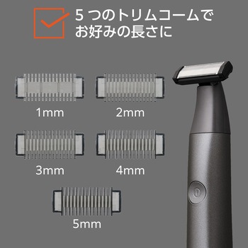アタッチメントで自然な仕上がりに。5つのトリムコームを付け替えて、全身の毛を好みの長さに調整できます。1mm単位で調整できるので、こだわりのヒゲデザインが可能。