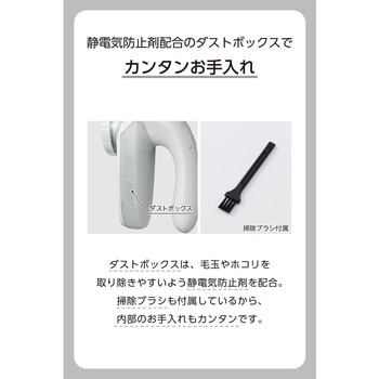 ダストボックスは、毛玉やホコリを取り除きやすいよう静電気防止剤を配合しています。掃除ブラシも付属しているから、内部のお手入れもカンタンです。