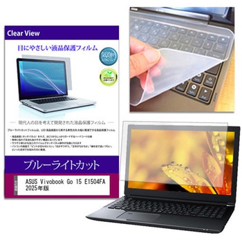 キーボードカバー シリコン と ASUS Vivobook Go 15 E1504FA 2025年版 15.6インチ 対応 ブルーライトカット光沢 液晶保護フィルム セット 互換品