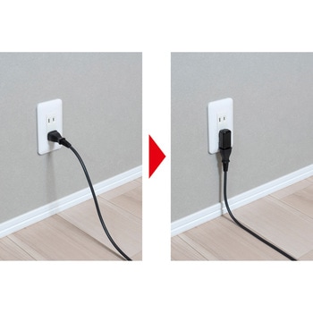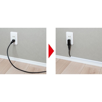 プラグの向きを縦方向に変えることで、コードを真下に配線できます