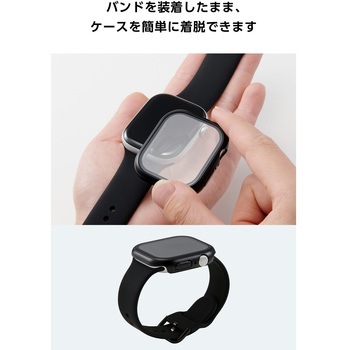 画面の視認性に優れる高透明なガラスとポリカーボネート樹脂で、機器本体を傷や汚れから守る、メタリックデザインが美しく際立つApple Watch用フルカバーケースです。