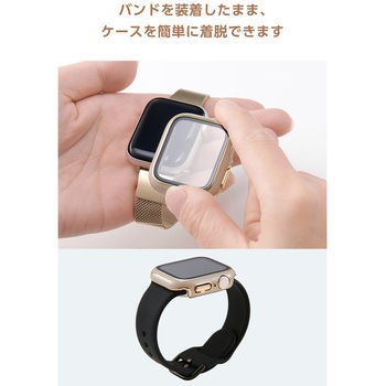 画面の視認性に優れる高透明なガラスとポリカーボネート樹脂で、機器本体を傷や汚れから守る、メタリックラインが美しく際立つApple Watch用フルカバーケースです。