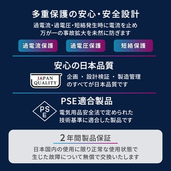 各種保護機能搭載の安心、安全設計