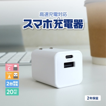 質量(g)72(パッケージ込み)本体質量(g)47寸法(幅W×奥行D×高さH)(mm)約32×43.3×32(電源プラグは除く)適合機器スマートフォン、タブレット、スマートウォッチ、ワイヤレスイヤホン、ポータブルゲーム機、その他USB機器※接続する機器に合わせたケーブルをご用意ください。※すべての機器での動作を保証するものではありません。保証期間2年間保護機能過電流保護、過電圧保護、短絡保護入力仕様AC100-240V 0.7A 50/60Hz出力仕様USB Type-C:[PD3.0] DC5V/3A、DC9V/2.22A、DC12V/1.67A、[PPS] DC3.3-5.9V/3A、DC3.3-11V/2A(20W Max)、USB Type-A:DC5V/3A、DC9V/2A、DC12V/1.5A(18W Max)、USB Type-C + USB Type-A:合計 DC5V/3A(15W Max)※充電環境により供給される電流値は異なります。※USB Power Delivery (PD)で充電する場合は、接続機器とケーブルがPDに対応していることをご確認ください。内容量1個