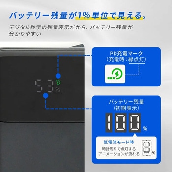 付属品取扱説明書(保証書付)質量(g)256(パッケージ込み)備考PSE適合製品本体質量(g)199使用温度(℃)充電時:0~35、放電時:0~35寸法(幅W×奥行D×高さH)(mm)約52×27×106対応機種タブレット・スマートフォン、Wi-Fiルーター、加熱式たばこ、ワイヤレスイヤホン、AC充電器、車載充電器、その他USB充電機器など※接続する機器に合わせたケーブルをご用意ください。※全ての機器での動作は保証しておりません。一部機器では充電ができない場合があります。※電熱ベストおよび空調作業服へのご使用は推奨しておりません。また、動作保証も致しかねますので、ご購入の際はご注意ください。定格出力USB Type-A:5V/3A、9V/2A、12V/1.5A、USB Type-C:5V/3A、9V/3A、12V/2.5A、15V/2A、20V/1.5A※USB Power Delivery (PD)で充電する場合は、接続機器とケーブルがPDに対応していることをご確認ください。バッテリーリチウムイオン電池 3.6V 10000mAh、36Wh充電時間空の状態から満充電まで約2時間 [PD30W]出力容量5V/6300mAh、9V/3400mAh、12V/2600mAh、15V/2000mAh、20V/1500mAh保証期間1年間保護機能過充電(電圧/電流)保護、過放電(電圧/電流)保護、短絡(ショート)保護、温度保護ケーブル長(cm)21定格入力USB Type-Cポート、ケーブル共通:5V/3A、9V/3A、12V/2.5A、15V/2A、20V/1.5A使用可能回数約400回※機器および使用条件によります内容量1個