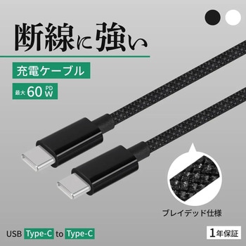 耐屈曲1万回 急速充電3A充電/データ転送対応USB Type-C to USB Type-C ブレイデッドケーブル 1.2m ブラック
