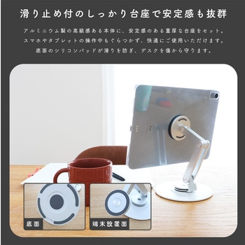 安定感ある台座に、高級感のあるアルミニウム製スタンド
