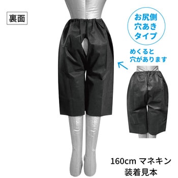 検査時にご使用できるディスポパンツです。(お尻側に穴が空いています。)肌が透けにくいブラックで、衛生的な使い切りタイプです。フリーサイズで男女兼用です。ウエスト部分がゴムになっているので、簡単に着脱できます。