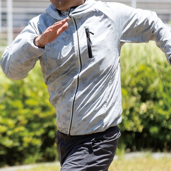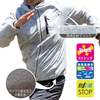 ・左胸部分に夜間や暗い場所での安全確保する反射ロゴマークを配置。
