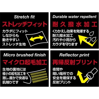・防風・耐久撥水加工で冷たい風や寒さから体をガード!