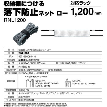 収納棚につける落下防止ネット ロー