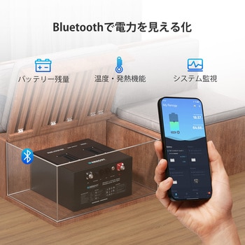Renogyアプリと連携して、電池残量や充放電状況をリアルタイムで確認できます。外出先でも手軽に管理できます。