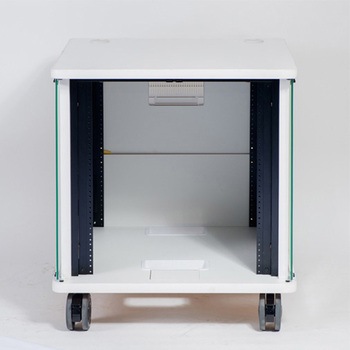 ガラス扉の鍵とマグネットラッチ受けを一体化しました。扉の開閉と施錠・解錠が同時にできます。扉を止めるマグネットはEIA実装部と間隔をあけ最上段からの機器実装が可能です。