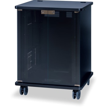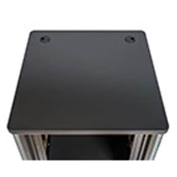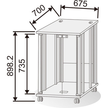 棚板の取付位置は、EIAピッチで上下移動できるので、機器と棚板との隙間なく取り付けられます。EIA下付きとなります。棚板はオプション(別売)です。