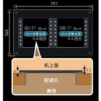 レクチャー卓の机上配線孔の表に取り付ける端子盤フレームです。MFPシリーズやKPシリーズのプレートを組み合わせれば、多種多様なシステムに対応可能です。システムの変更や改修時にもプレートの取り替えだけで対応できます。